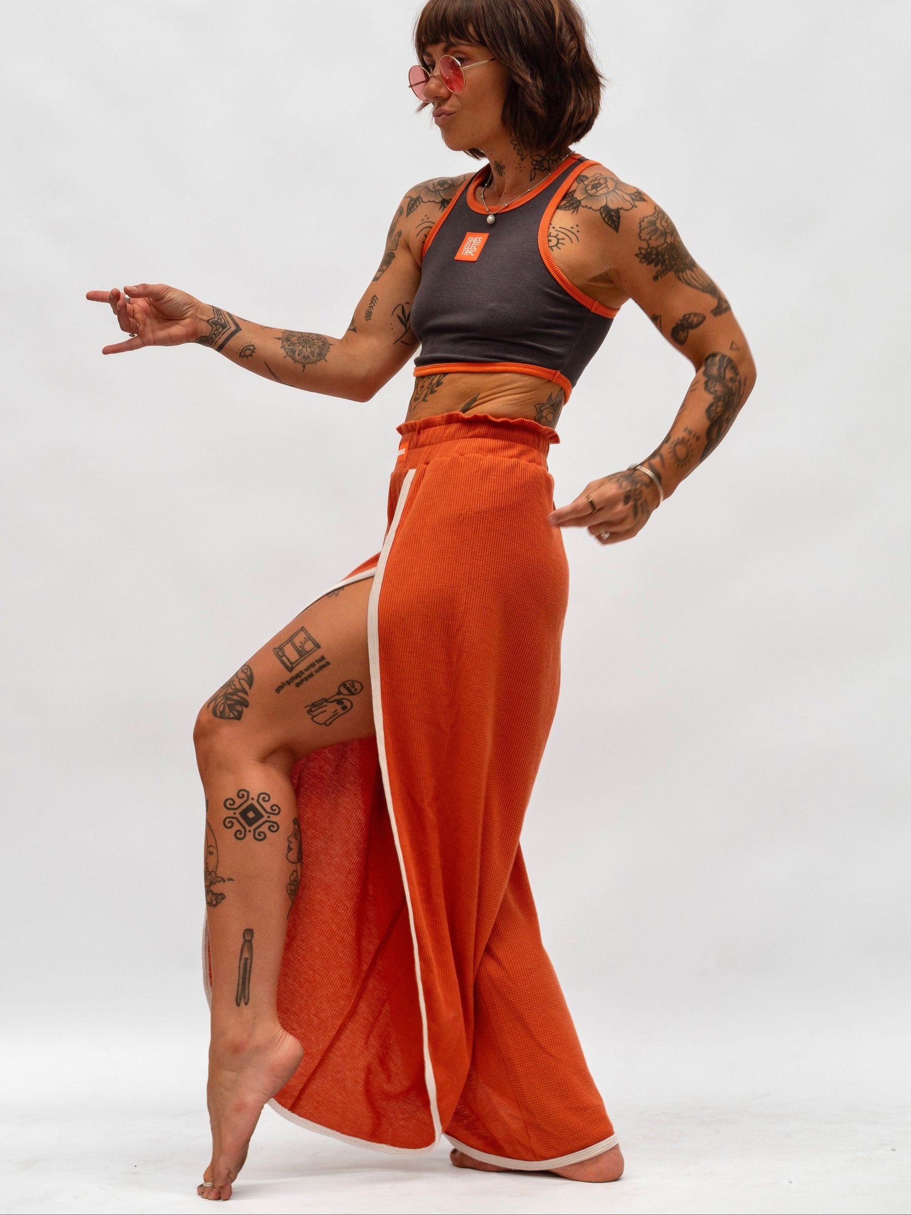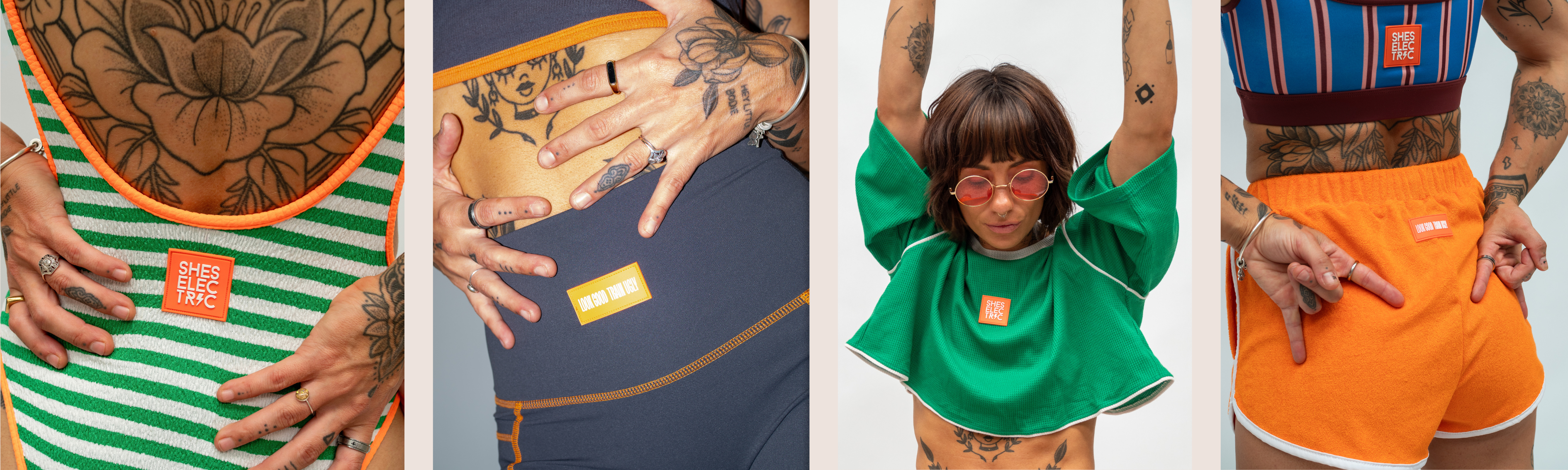 My goal is to design activewear that nobody's seen before. Runway style collections. Collections that tell story's and drive emotion. Pieces that empower. Kick-ass fits that turn heads everywhere. So while the other brands chuck their logo on stuff that everyones  already seen before, I go the opposite route. Nothing I create comes straight off the shelf. All She's Electric pieces are fully designed, top to bottom by me, Shanah, and then they get hand crafted by my incredible manufacturing team in Yiwu Zhejiang, China.
